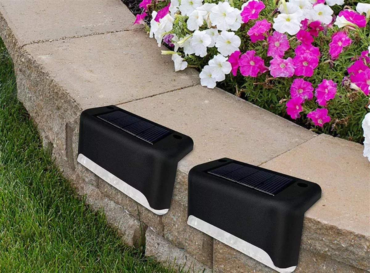 Diğer Solar Güneş Enerjili Şarj Edilen Köşebent Merdiven Veranda Bahçe Led Lamba Siyah