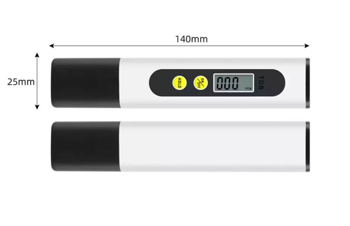 Malzeme: ABS plastik kabuk Boyutu: 137*25*14mm Güç kaynağı: 2 * düğme pil Test öğesi: TDS değeri Ölçüm TDS aralığı: 0-9990PPM Çözünürlük: 1PPM Hata Payı: ± 2%