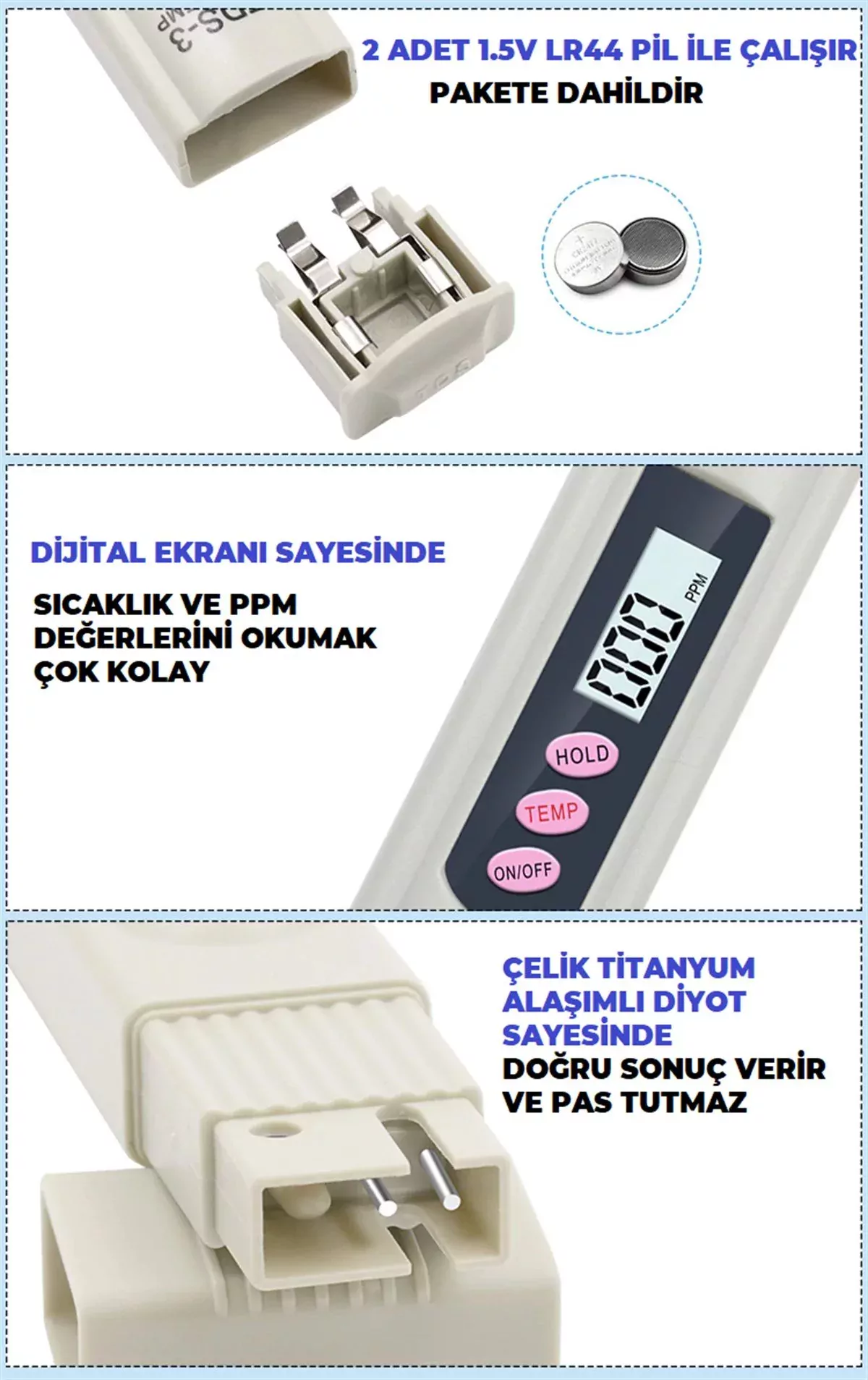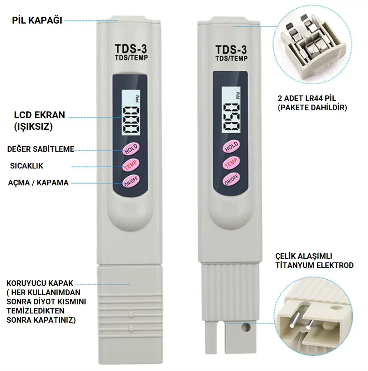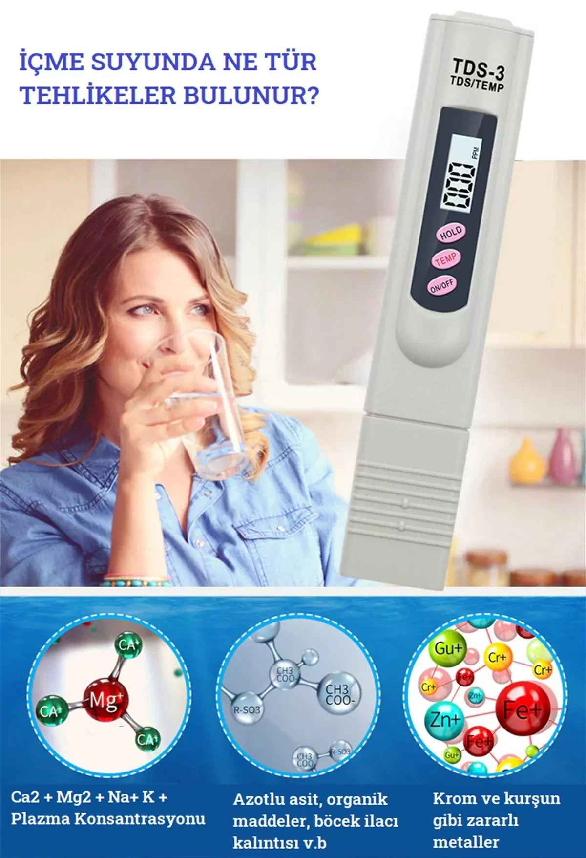 TDS Metre Su Kalite Test Ölçüm Cihazı Saflık Ölçer Pil + Kılıf