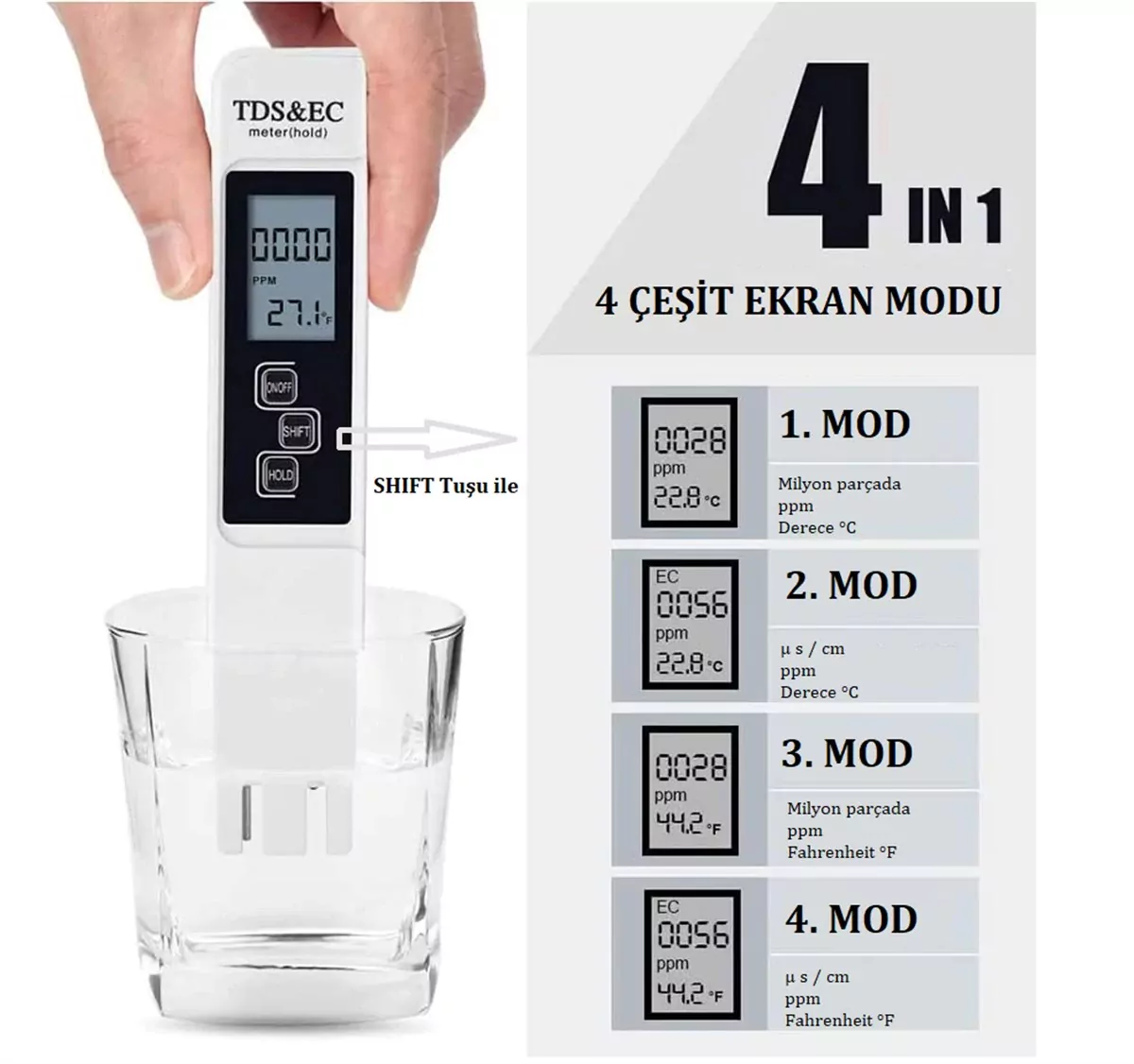 Termometreli - Suyunuzun Kalitesini ve İletkenliğini Ölçün