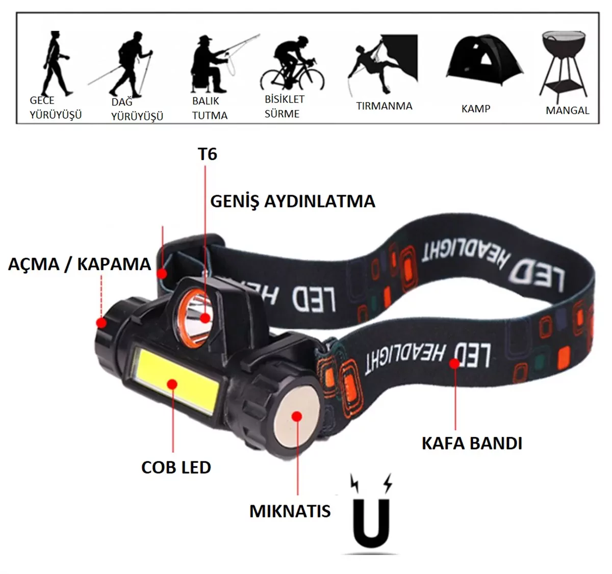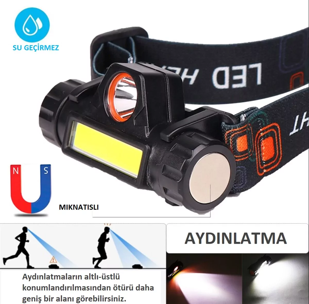 XST 211 XPE + COB LED Aydınlatmalı USB Şarj Edilebilir Kamp Yürüyüş Kafa Lambası