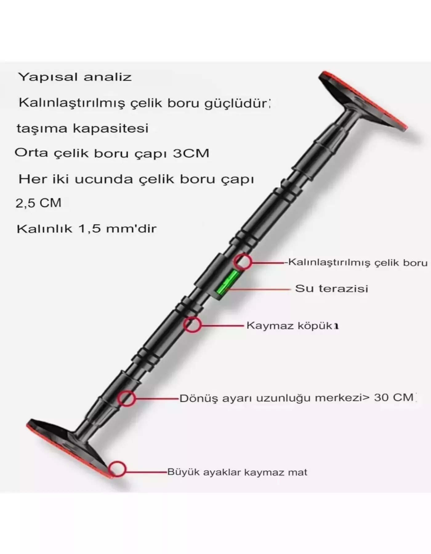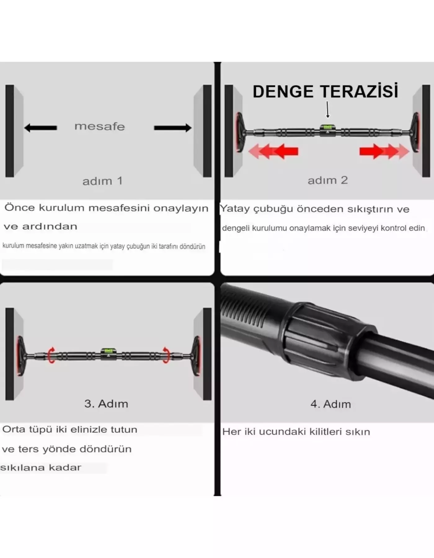 Renk: siyah Ürün Kullanım Şekli: Kapı boyunda barfiks aletini genişleterek kapı boyuna getirip sıkıştırınız.